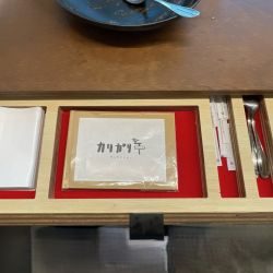 引き出しからメニューを取り出し、写真で一番旨そうな人気トッピング全部乗せのカレーを選択。