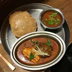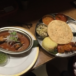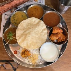 到着した一皿は、周りのお客さんがオーダーしたプレート(3種〜4種)に比べて小さいプレートだが、カレーの容器は他より大き目。で、ルーをスプーンで掬いいただくと、スパイシーで美味しい。辛さも... 続きを見る